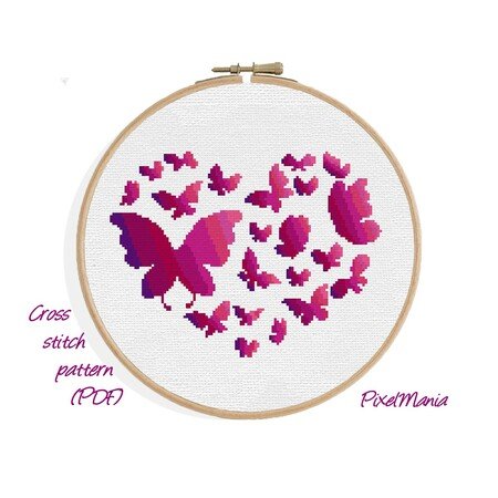 Kreuzstich Schmetterlings Herz Grafik Fur Stickbild