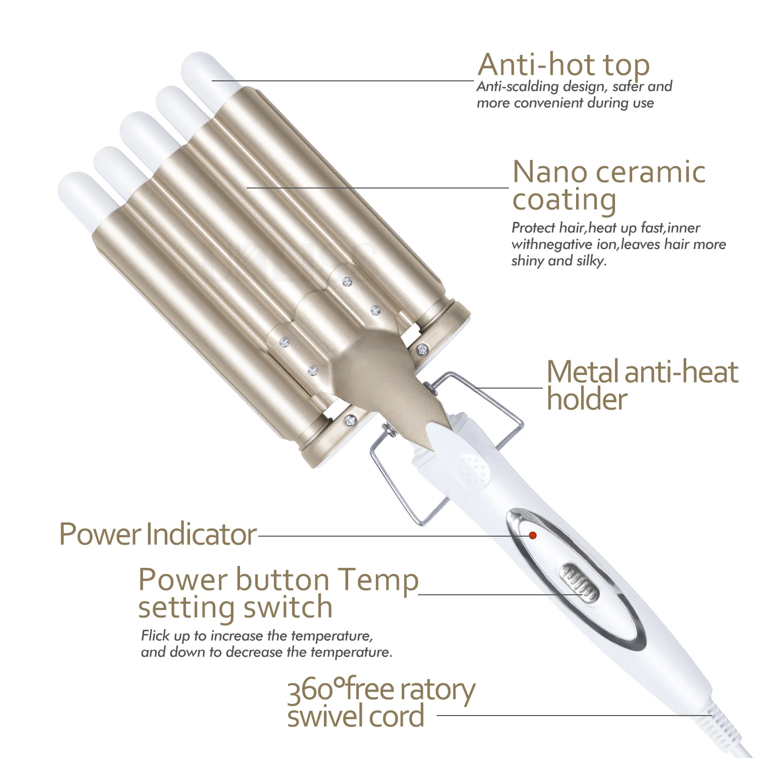 5 Barrel Curling Iron Wand Hair Waving Beach Waves Fast Styling Tools With Lcd Temperature Display For Women Salon Hair Crimper Aliexpress